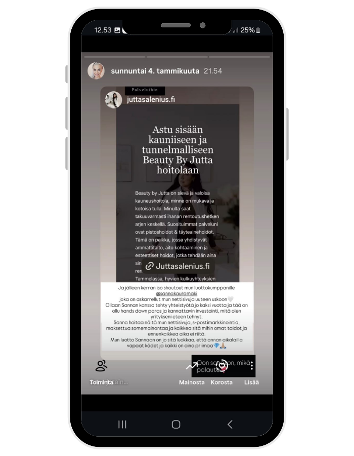 Ollaan Sannan kanssa tehty yhteistyötä jo kaksi vuotta ja tää on ollu hands down paras ja kannattavin investointi, mitä olen yritykseni eteen tehnyt.