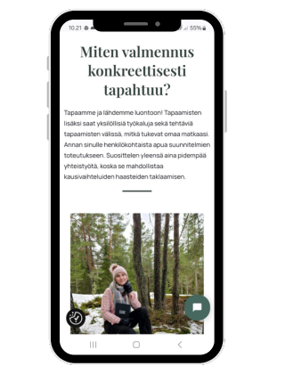 Suvi Saarinen on psyykkinen valmentaja, joka yhdistää työssään henkisen valmennuksen ja luonnon hyvinvointivaikutukset. Hänen työnsä ytimessä ovat läsnäolo, rauha ja aito kohtaaminen – ja juuri tämän saman tunteen piti välittyä myös verkossa.